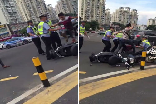 实拍打砸被扣电动车还飞踹交警 海口两男子被拘后公开道歉