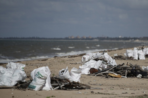 海口一海滩出现大量垃圾堆积 区环卫部门:2天内清理完毕
