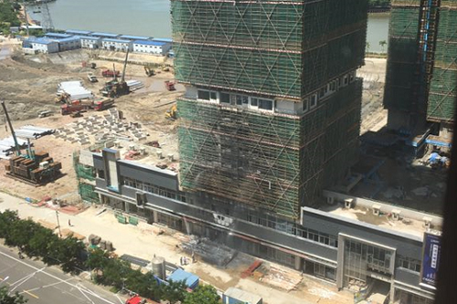 海口滨江海岸一在建楼盘着火 系塑料防护网着火引起