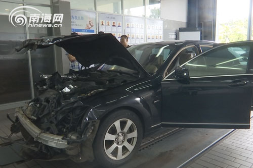 奔驰车剧烈撞击安全气囊未打开 海口商家称:未达到撞击点