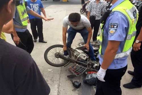 海口:骑车逆行违规遭扣车 奇葩车主竟当街怒砸电动车