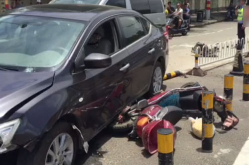 突发!海口坡巷路与城西路交叉口五车连撞 导致两人受伤