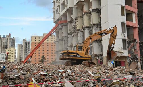 网友实拍海口坡博村拆除16层高楼房