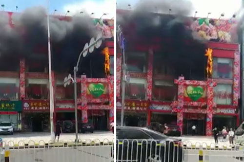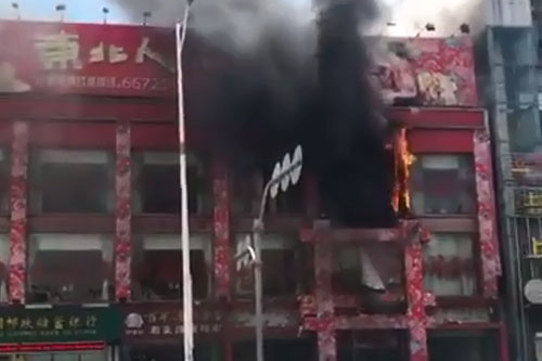 实拍海口龙华路东北人饭店着火现场