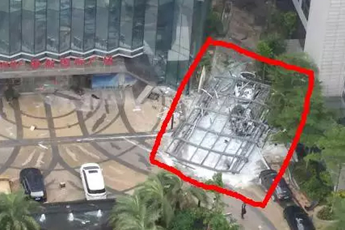 海口一高楼外墙玻璃突然脱落 砸毁至少2辆车