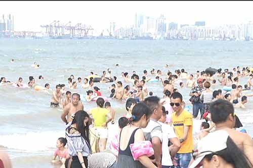 海口假日海滩景区超10万人“洗龙水”沾福气 场面壮观