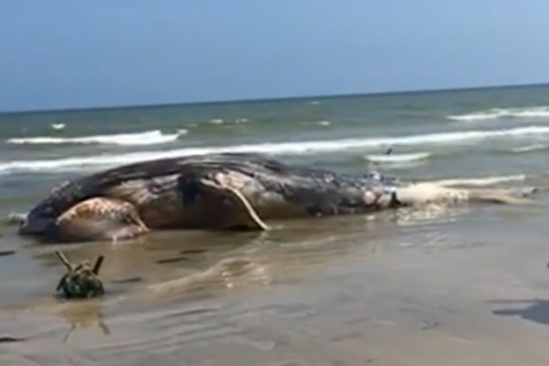实拍文昌冯家湾海域一鲸鱼搁浅死亡 死因有待调查
