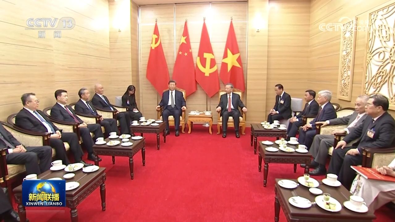 习近平同越共中央总书记苏林、越南国家主席梁强共同会见中越人民大联欢活动代表